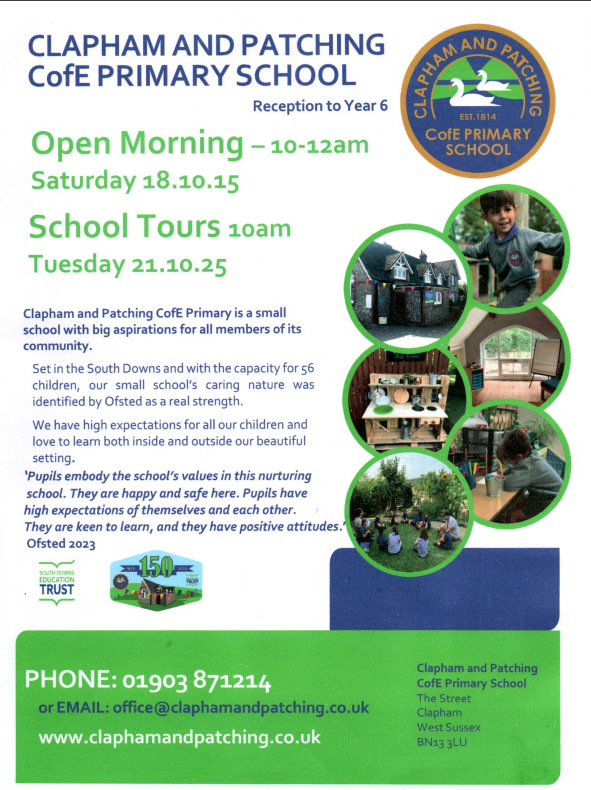 Nestled in the beautiful South Downs National Park, Clapham and Patching CofE Primary School has been an integral part of the community for over 150 years. We are a small, caring village school with a strong Christian foundation; proud of our heritage yet ambitious for the future. With high expectations for every child, we are committed to helping our children flourish academically, socially, and spiritually.